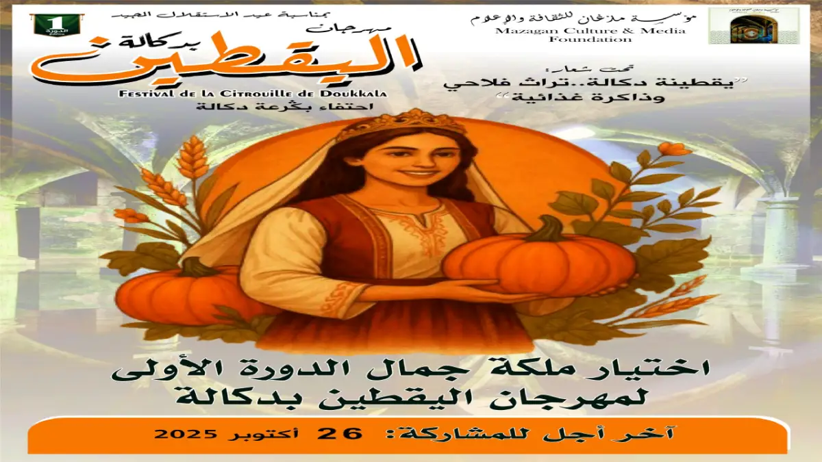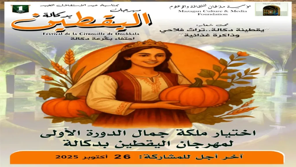في إطار فعاليات الدورة الأولى من مهرجان اليقطين بدكالة، الذي تنظمه مؤسسة مازغان للثقافة والإعلام خلال الفترة الممتدة من 21 إلى 23 نونبر 2025، تحت شعار “الجمال في خدمة البيئة والتراث”، أعلنت المؤسسة عن إطلاق مسابقة “ملكة جمال مهرجان اليقطين” في نسختها الأولى، احتفاءً بالمرأة الدكالية وجمالها الأصيل المتناغم مع الذكاء والإبداع وروح الانتماء البيئي.